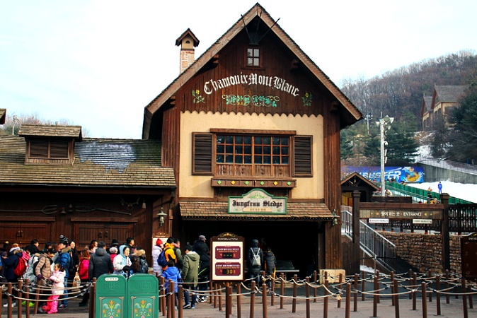 아메리칸 어드벤처에서 스카이웨이를 타고 바로 접근할 수 있으며, 스카이웨이 하차 공간 (133번) 기준으로 우측은 (133번) 중심, 좌측은 알파인 빌리지로 구성되어 있다. 전반적으로 아름다운 유럽 마을을 컨셉으로 시설물들이 유럽풍 건축 양식으로 지어졌다. 특히 알파인 빌리지는 스위스의 알프스 마을을 컨셉으로 하여 스위스 건축양식이 특징이다.