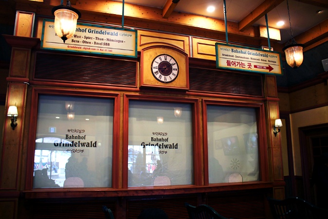 에버랜드에서 찾을 수 있는 몇 안되는 '프리쇼'가 존재하는 어트랙션이다. 단순히 산악열차를 표현함에서 그치지 않고 위 사진과 같이 입장부터 대기줄을 지나면서 실제 그린델왈드 역의 매표소와 열차 시간표, 스위스 지도 등이 중간중간 벽에 붙어 있다.