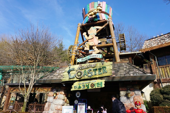 국내 최초의 역방향 롤러코스터로, '레이싱코스터'를 거꾸로 읽은 '터스코싱이레'라는 이름을 가진 어트랙션이다. '토끼와 거북이 경주'를 컨셉으로 제작된 이 어트랙션은 실제 롤러코스터 비클에 토끼와 거북이가 디자인되어 있다. 기존의 패밀리 코스터를 역방향으로 리모델링 한 것으로, 한정 운행될 예정이었지만 현재까지 계속 역방향 코스터로 유지되고 있다.