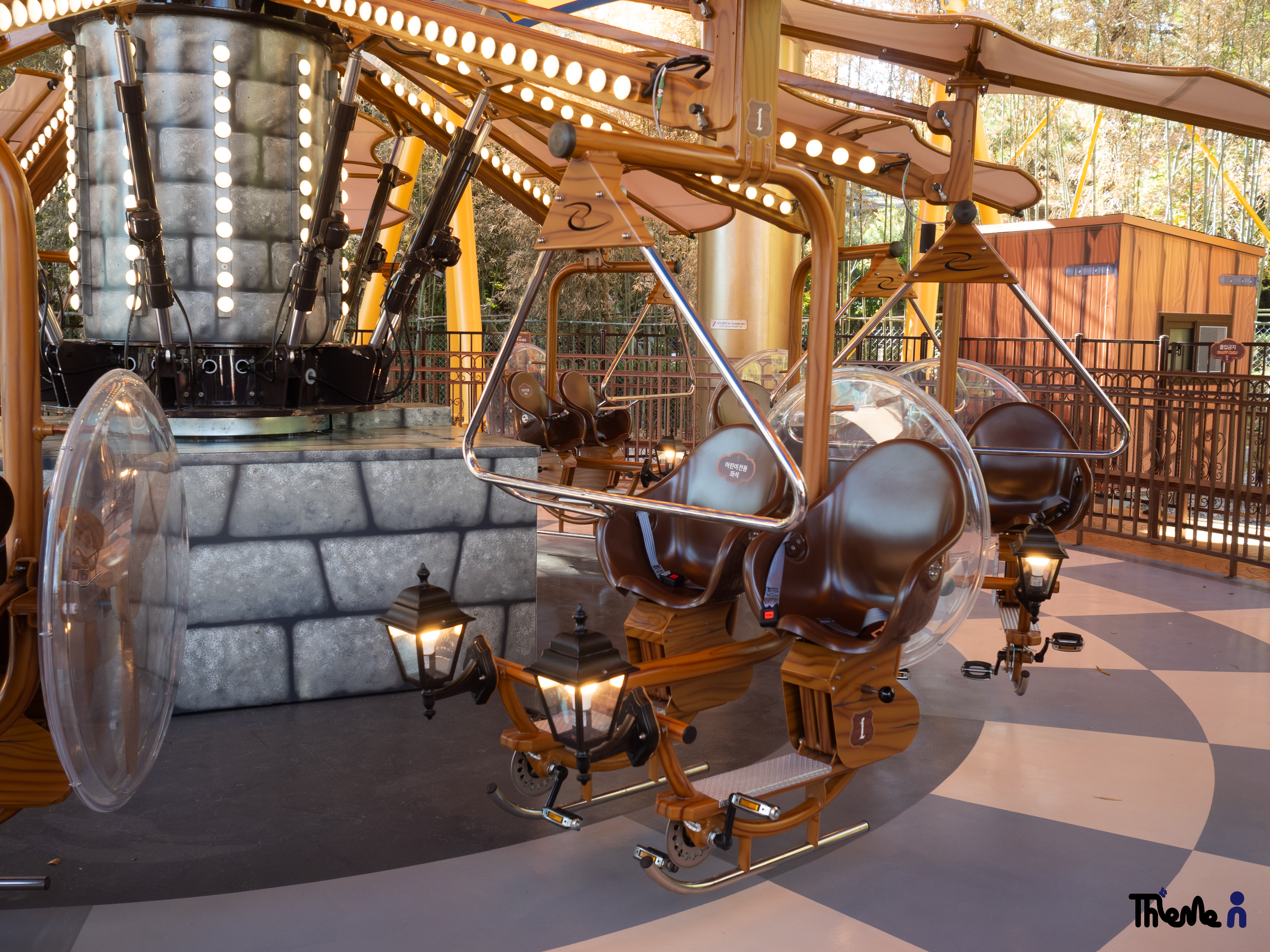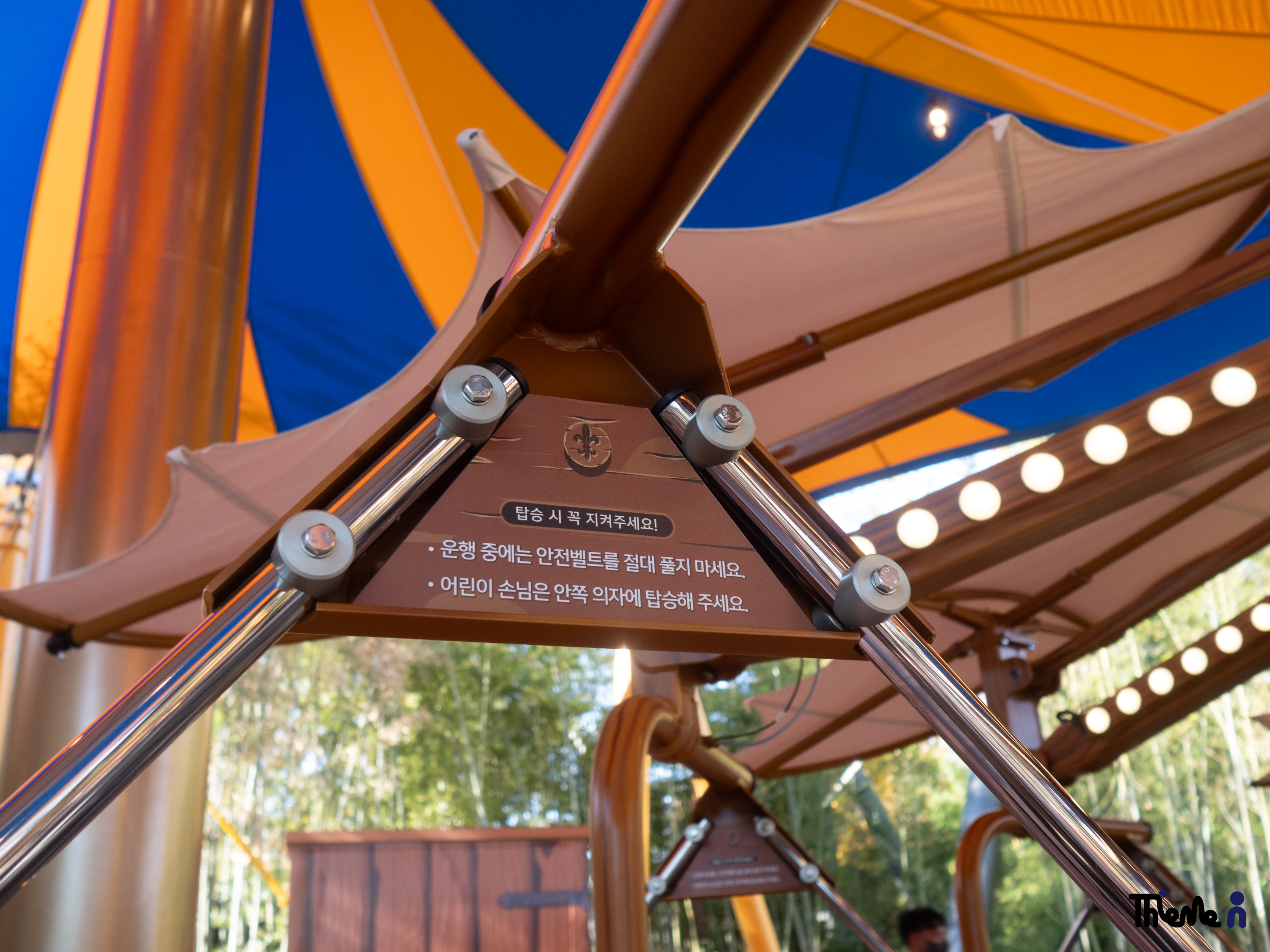 운행 자체는 굉장히 단순하다. 다만 패밀리 어트랙션이라 하여 느릴 거라 생각했는데 생각보다 빨라서 놀랐다. 그리고 페달을 꾸준히 밟지 않으면 생각보다 빠르게 하강하는데 유압 기기 특성 상인지 가끔 덜컹거려서 약간의 긴장감을 느낄 수 있었다. 반대로 열심히 페달을 밟으면 꽤 높게 올라간다. 주변에 나무와 기타 시설물 등이 있어 풍경 보기는 어렵다는 게 아쉬운 점이었다.