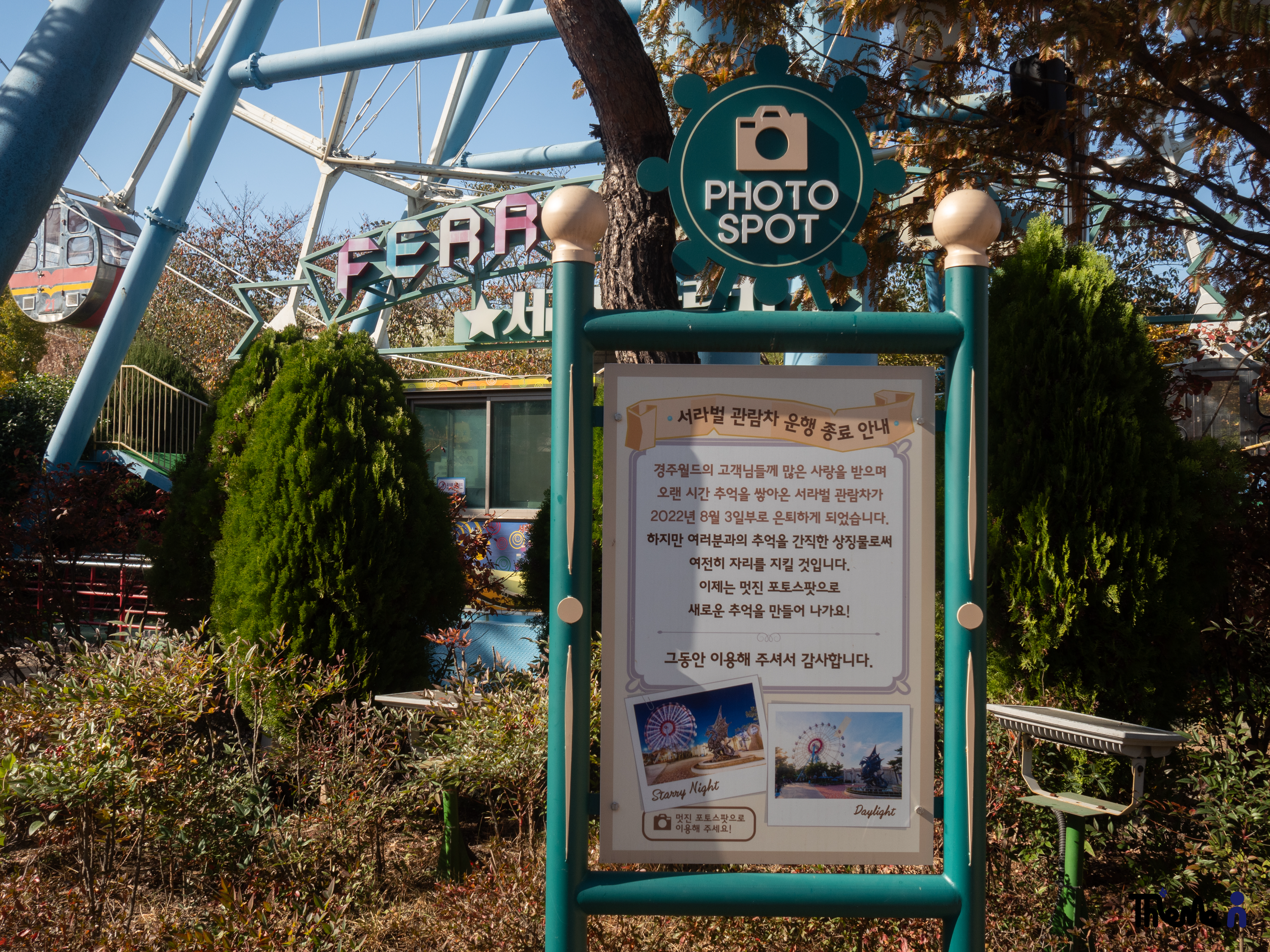 서라벌 관람차는 에버랜드의 관람차처럼 노후한 상태라 운행을 안 하고 있었는데, 구경하러 갔을 당시에 강한 바람이 불어 살짝 도는 모습을 볼 수 있었다.