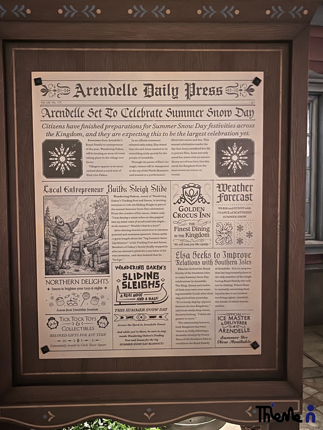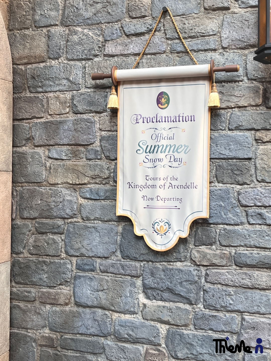 홍콩 디즈니랜드 공식 홈페이지에 따르면, 안나와 엘사가 진정한 사랑으로 엘사와 왕국을 구한 날을 함께 기념하는 의미로 summer snow day라는 날을 지정했으며, 겨울왕국 내의 놀이기구, 상점, 레스토랑 모두 축제의 장을 열고 방문객들을 환영한다. 파크 곳곳을 돌아다니다 보면 summer snow day 눈 결정모양 마크가 군데군데 박혀있는데 이를 찾아보는 재미도 쏠쏠하다!!