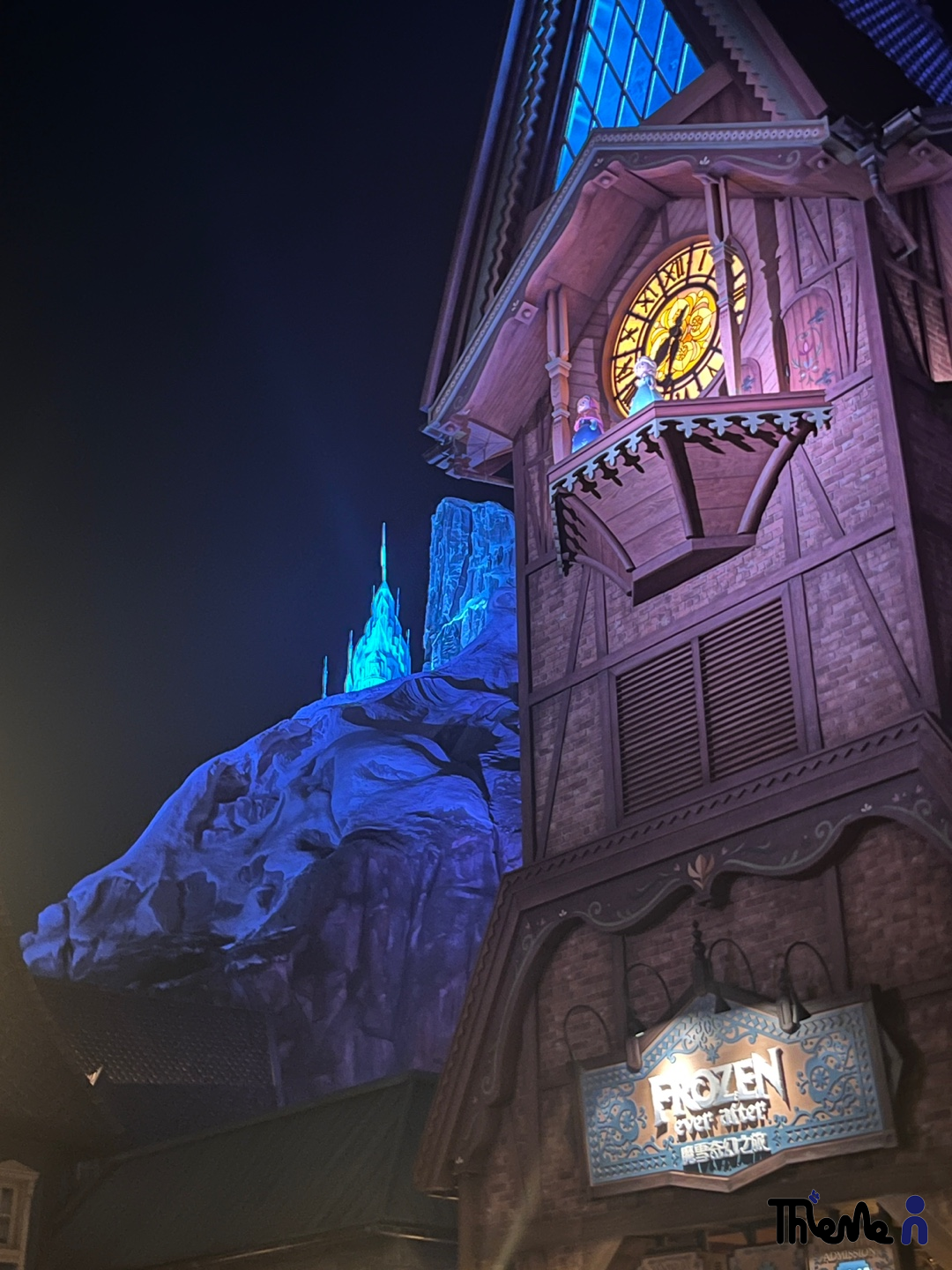 대기라인과 프리쇼는 규모가 크고 프리쇼의 전반적인 인테리어는 아렌델 마을 저녁의 모습과 안나와 엘사가 어린 시절 같이 놀던 얼음궁전 성 내부가 볼거리로 되어있다.