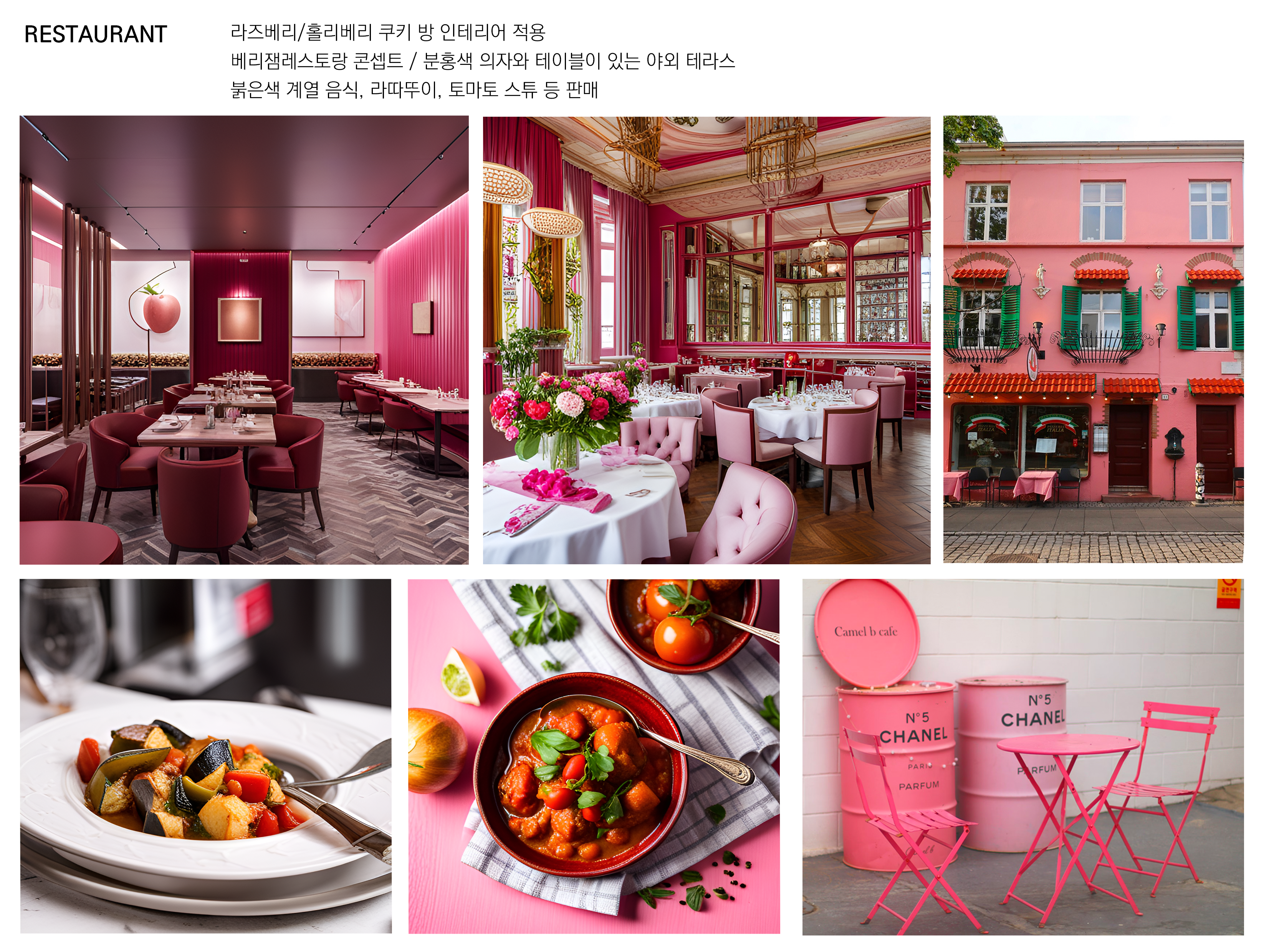 게임 내 베리잼 레스토랑을 현실화시켰다고 생각하고, 실제 잼스튜와 유사하도록 붉은 계열 음식을 메뉴로 선정했다. 베리류로 모든 메뉴를 통일하기보다는 붉은색이라는 공통점을 유지하면서 사람들에게 거부감없이 다가갈 수 있도록 계획했다