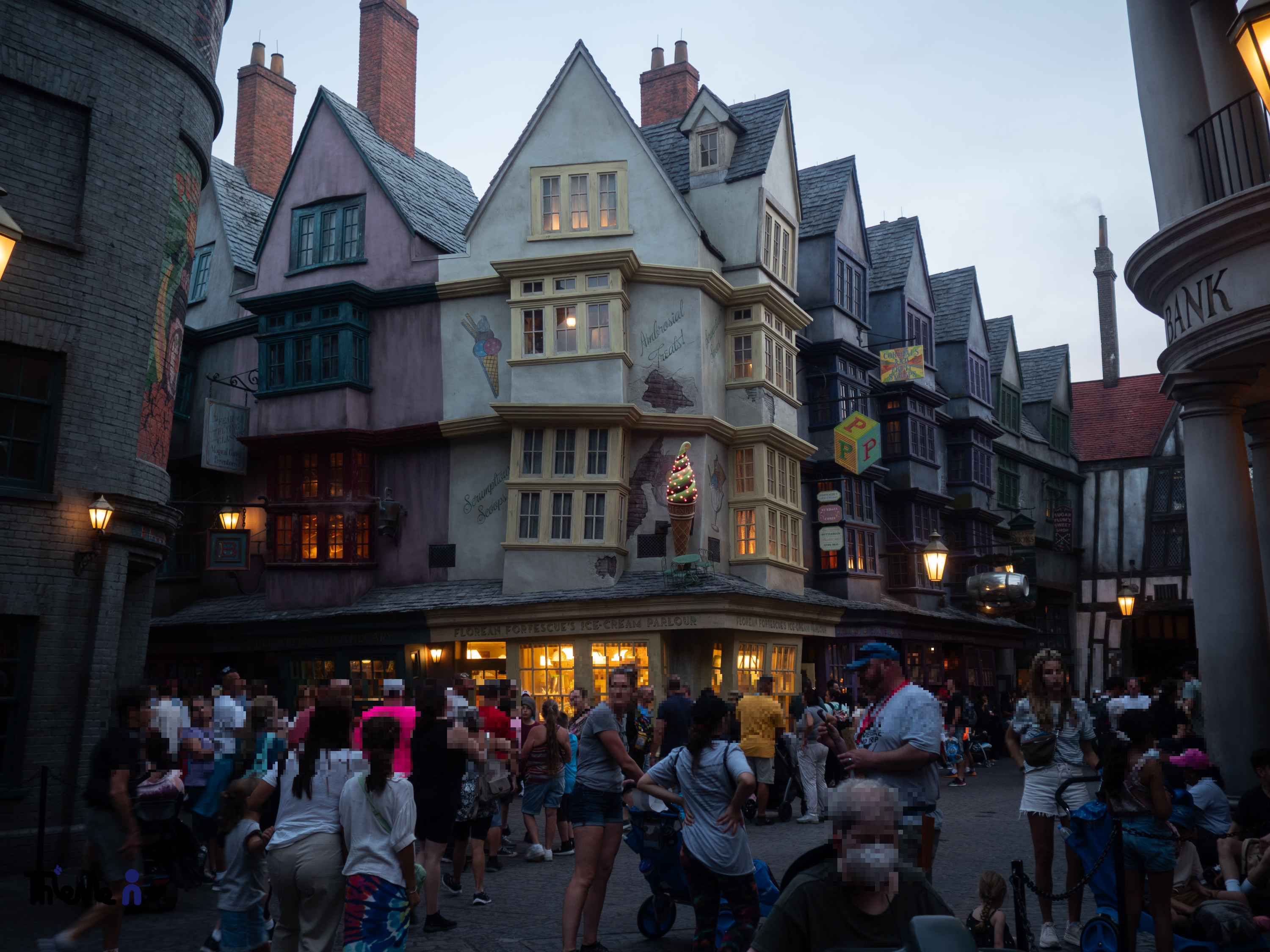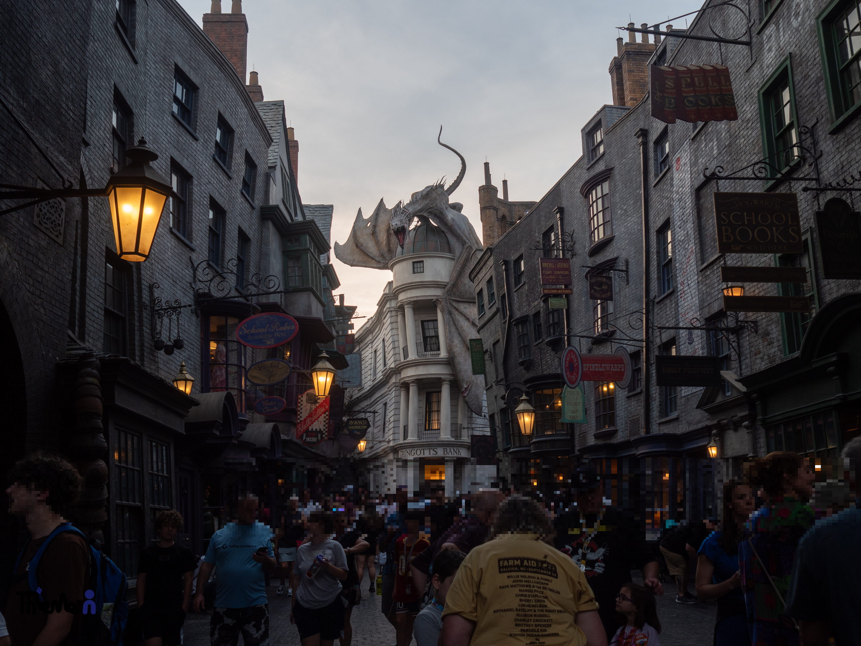 인기 영화 <해리포터> 시리즈를 모티브로 한 구역으로, Islands of Adventure아일랜드 오브 어드벤처의 위저딩 월드 - 호그스미드와 달리 런던 시내에서 연결되는 상점가인 다이애건 앨리를 구현했다. 실제 영화에 나오는 듯한 상점들과 그린고트 은행, 그 위를 장악한 드래곤의 화염 방사 쇼와 각종 마법같은 장치들의 조합으로 개장 직후부터 많은 인기를 끌고 있다. 특히 후술할 호그와트 익스프레스 어트랙션을 즐기기 위해 1일 2파크 티켓 조합을 선택하는 사람들이 많다.