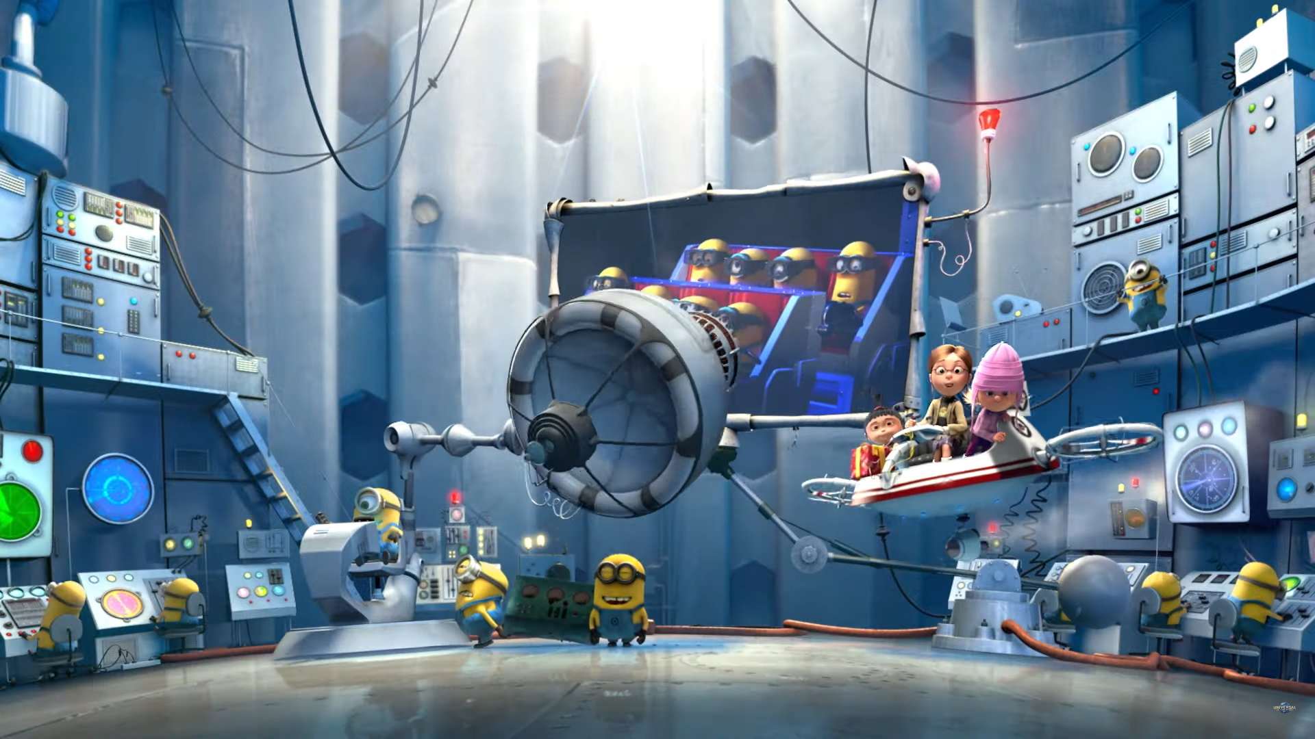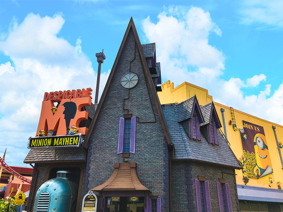 한국에서는 <미니언즈> 시리즈 영화로 유명한 <Despicable Me>를 모티브로 하여 제작한 어트랙션이다. 물, 바람, 향기 등 다양한 특수 효과를 이용한시뮬레이터 어트랙션으로 4D 영화관처럼 대형 화면이 눈 앞에 있고 개별로 흔들리는 비클을 탑승한다. 비클이 트랙을 따라 움직이지는 않지만 흔들림이 크기 때문에 키 제한이 있다. 다만 키 제한을 만족하지 못하거나 멀미 등으로 인해 탑승이 힘든 사람을 위한 뒷편에 고정 좌석도 마련되어 있다.