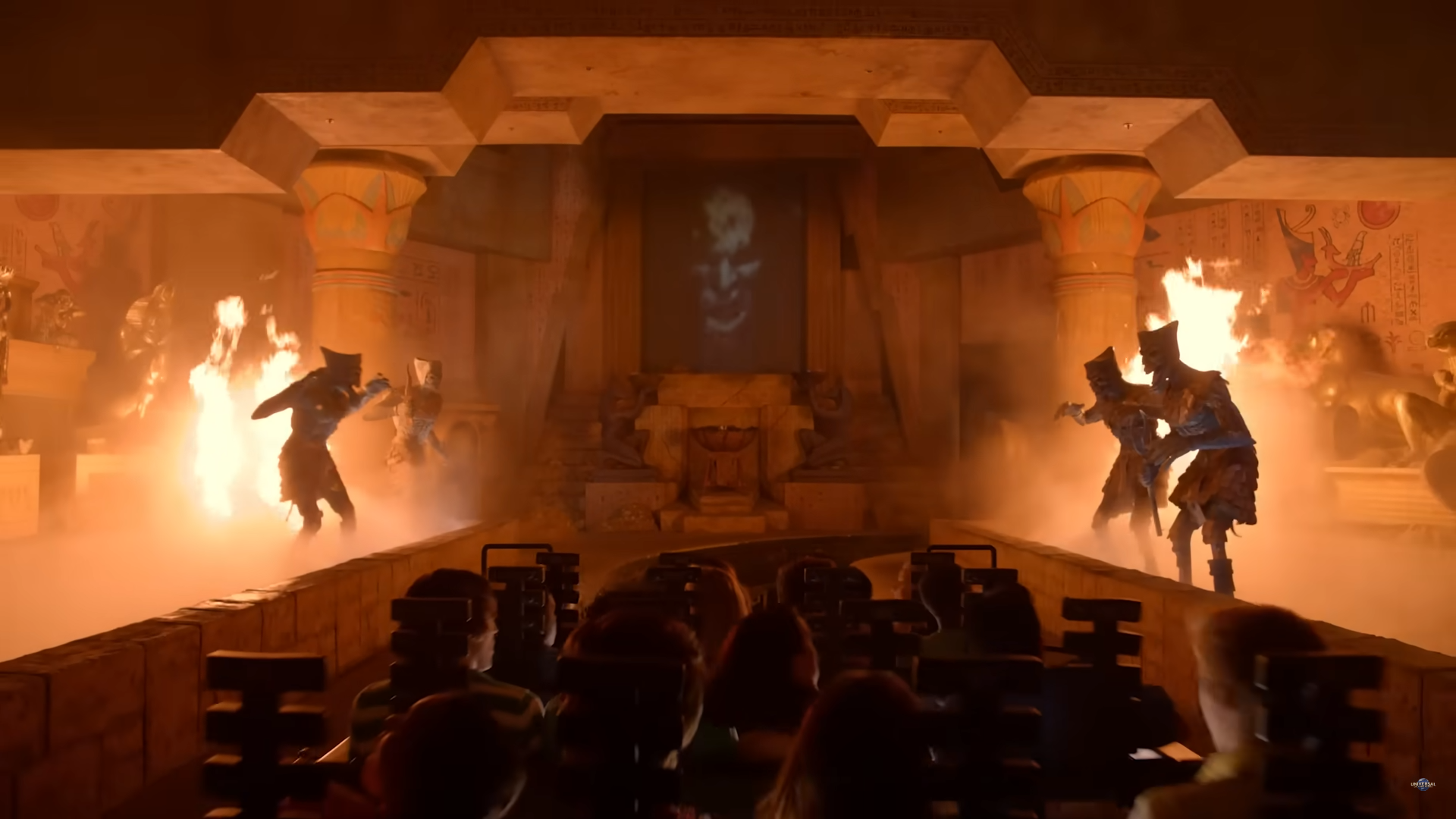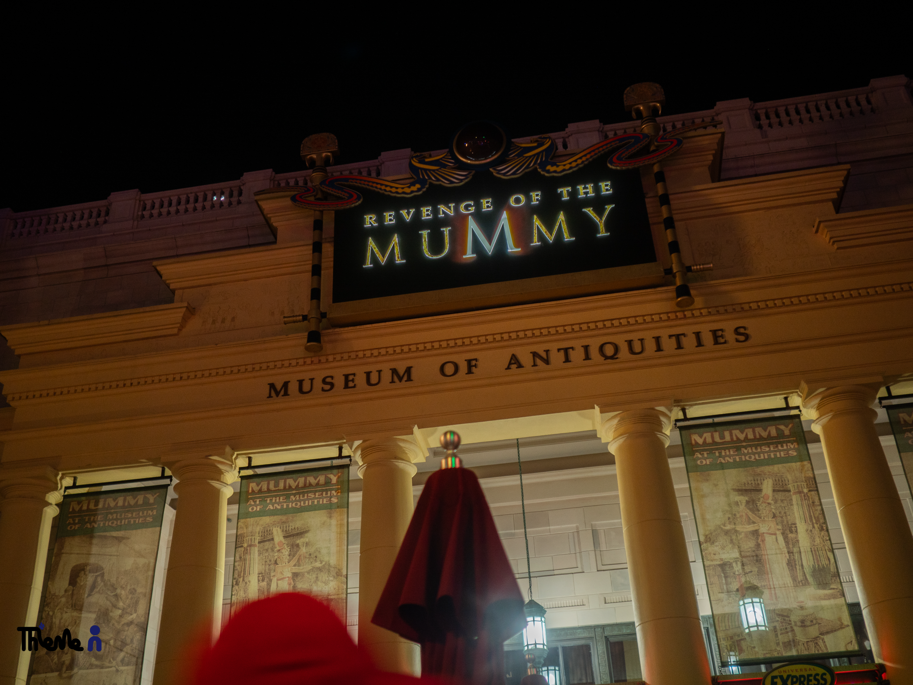 인기 어트랙션인만큼 프리쇼 - 메인쇼 - 포스트쇼의 구성을 충실히 따라가고 있다. 프리쇼에서는 <Revenge of the Mummy>라는 영화의 세트장에 입장하게 된다. 이 어트랙션의 이야기에서 가장 중요한 것은 '미이라의 저주'로 Medjai 메쟈이라는 존재만이 저주로부터 사람을 구할 수 있다. 이를 찾아 이모텝의 저주로부터 벗어나는 것이 메인쇼의 이야기이다.