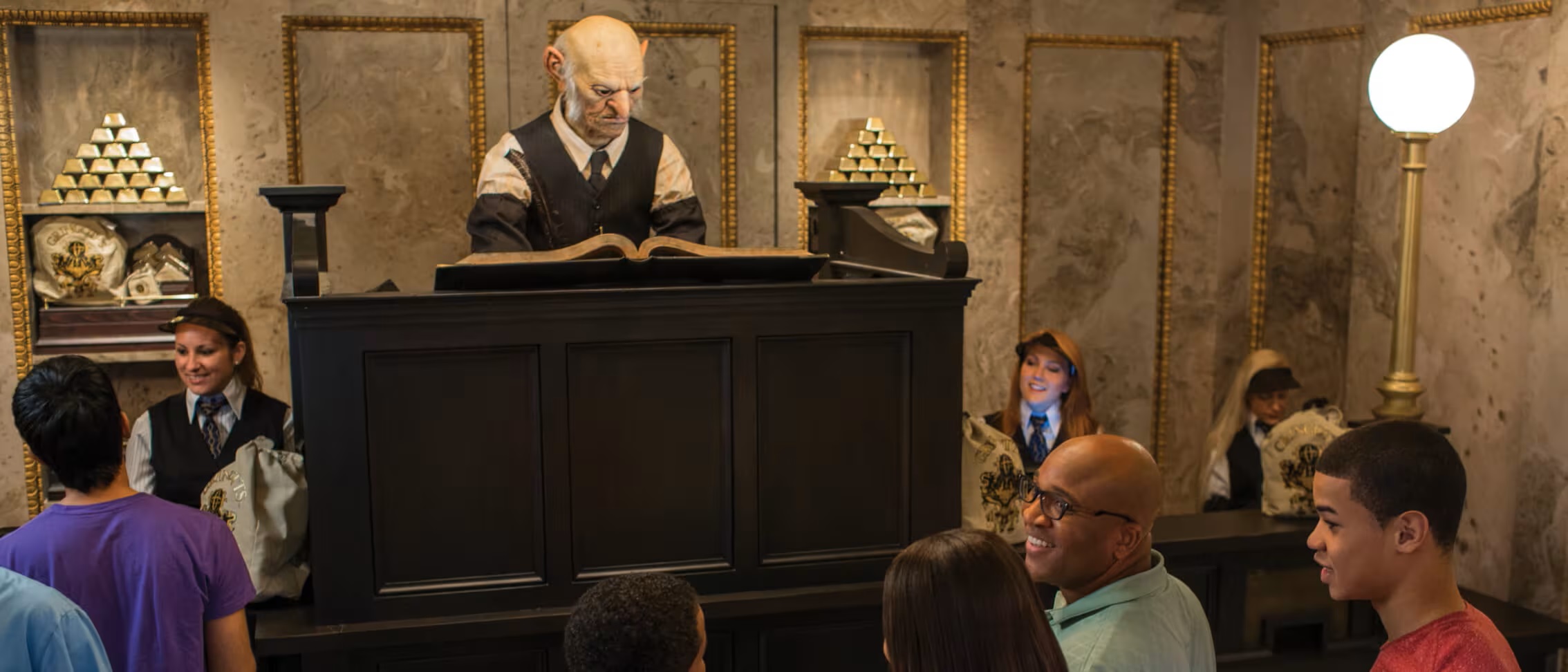 극 중 가장 안전한 은행인 그린고트 은행을 모티브로 한 가게이다. 은행 직원인 고블린을 볼 수 있으며, 특이하게 미국 돈을 마법사 화폐로 바꿔주는 환전소의 역할을 한다. 이 화폐는 호그스미드와 다이애건 앨리 구역, 그리고 유니버설 리조트 일부 가게에서도 사용 가능하다. 미사용한 화폐는 다시 환전이 가능하다.