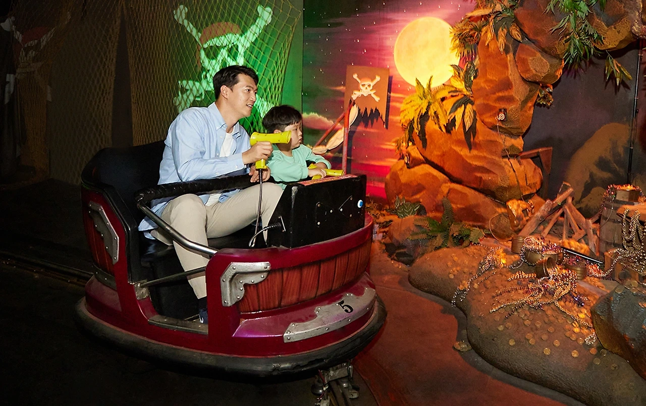해적소굴 테마로 한 어트랙션이다. 트랙 곳곳에 설치된 과녁을 향해 총을 쏘는 슈팅 다크라이드이다. 테마에 맞춰 적절하게 꾸며져 있어 모험의 나라 특유의 분위기를 느낄 수 있다.