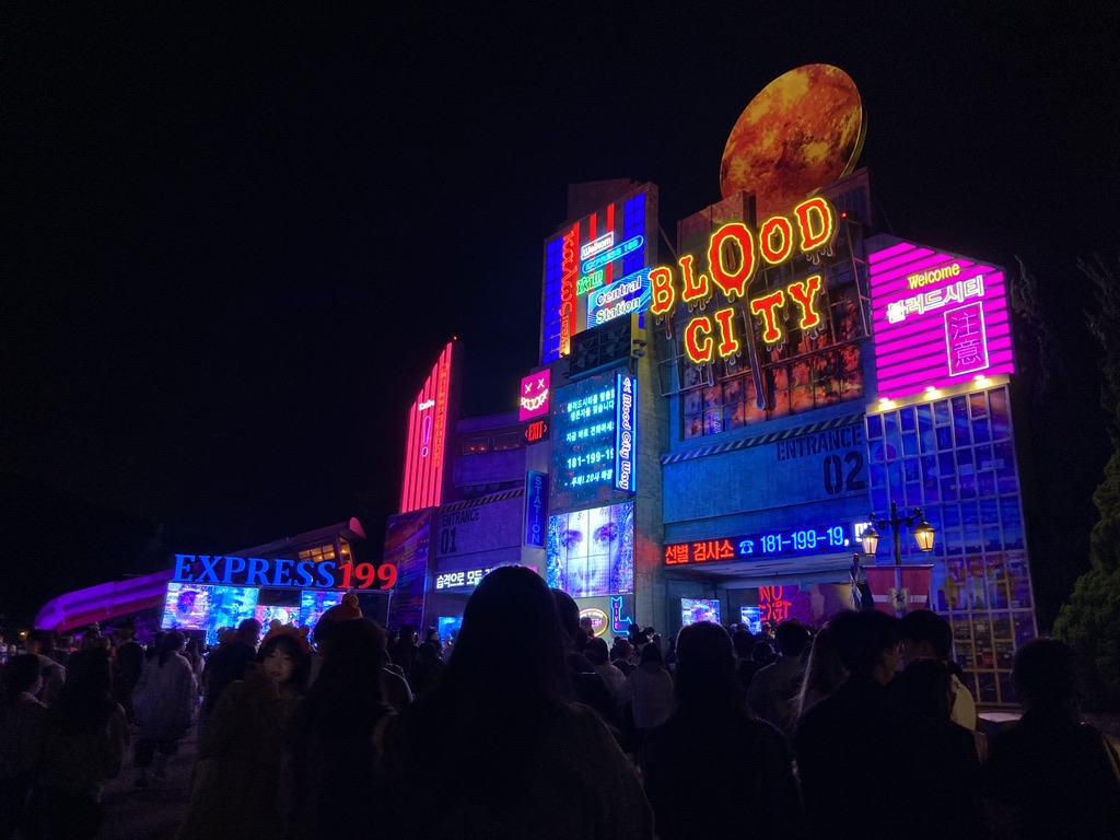 가을 시즌의 특별한 점은 바로 다른 시즌에서는 특별히 활용되지 않았던 ‘알파인 빌리지’ 구역이 블러드 시티로 활용된다는 점이다. 블러드 시티는 2022년 기준 6, 2023년 7까지 진행되었다. 호러 테마존이라는 기본 콘셉트에 매년 스토리가 다르게 더해진다. 2021년 블러드시티5는 다크 서커스, 2022년 블러드시티6는 좀비로 가득한 도시의 기차역을 메인 콘셉트로 가져갔다. 매년 새로운 콘셉트일 뿐만 아니라 그들간에 스토리가 이어진다는 점이 재미 요소가 된다.