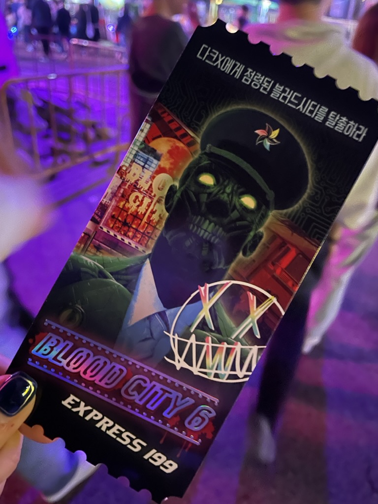 특히 2022년의 블러드시티6은 ‘오징어게임’의 채경선 미술감독과 콜라보하여 디스토피아적인 기차역 풍경을 완성도 높게 구현해내어 호평을 받았다. 실제 무궁화호 열차 일부를 사용하여 실감나게 구현했고, 해가 지는 순간부터 화려한 네온사인이 켜지면서 디스토피아 좀비 도시가 펼쳐진다. 이곳을 탈출하기 위한 기차 익스프레스 999가 곧 티익스프레스이기 때문에 해당 시즌의 저녁이 되면 티익스프레스 또한 붉은 조명과 함께 좀비 승무원이 맞아주는 기차로 변신한다.