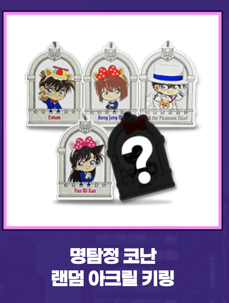 두번째롯데월드와 명탐정 코난의 콜라보인 만큼, 앞선 홍보 이미지에서는 로티가 코난의 안경을 쓰고 있었다면 이곳에서는 코난이 로티의 머리띠를 쓰고 있다. 이 일러스트 이미지는 콜라보 ONLY 굿즈로 랜덤 아크릴 키링으로 제작되어 있다. 로리 머리띠를 쓴 홍장미와 유미란, 로티 가방을 멘 괴도키드 등 롯데월드 콜라보에서만 볼 수 있는 특별한 굿즈이다. 다른 MD는 대부분 기본적인 굿즈였던 터라 이 아크릴 키링이 콜라보에서만 할 수 있는 장점을 반영한 것이라 좋았다. 외부 IP와 롯데월드의 '콜라보'인 만큼 단순히 IP의 굿즈를 들여오는 게 아닌, 롯데월드의 특징을 반영하여 이곳만의 특별한 MD를 만드는 것은 콜라보의 특수성을 높이는 수단이 될 것이다.